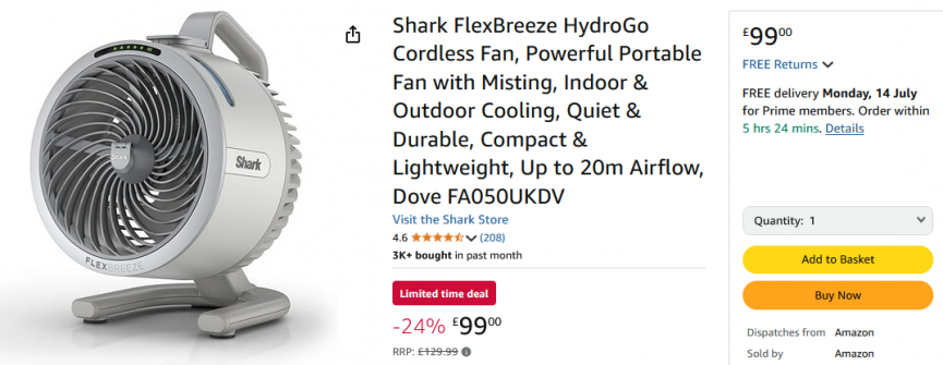 The Shark FlexBreeze HydroGo Cordless Fan is literally EVERYWHERE right now, I have heard so many good things about this fan. It regularly sells out too so I was shocked to see it with 24% off at Amazon as part of their prime day deals! Get it for just £99 with free delivery today!