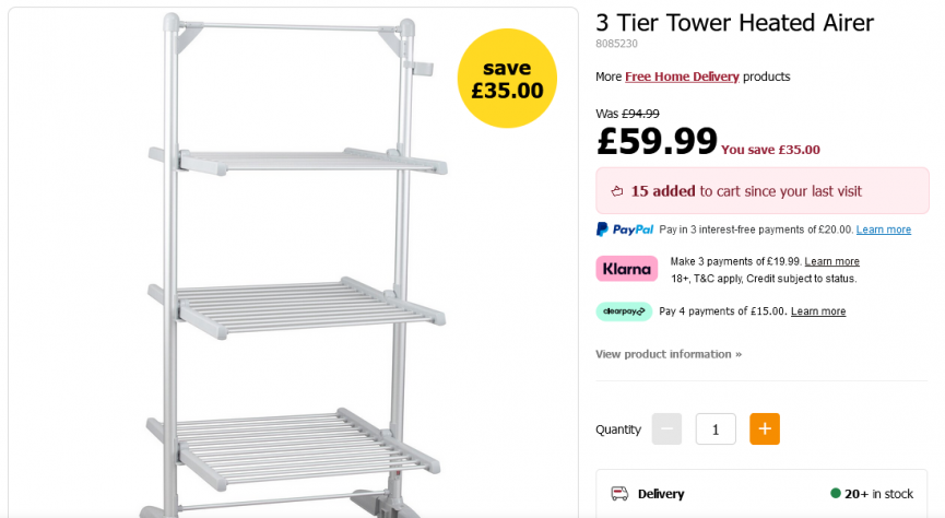 We recently showed you the Dunelm Heated Airers that are great for saving money on those energy bills when it comes to drying our washing but we've found a deal just as good at Wilko. This 3 Tier Tower Heated Airer has dropped to only £59.99 from £94.99 and there's even free click and collect or home delivery included!