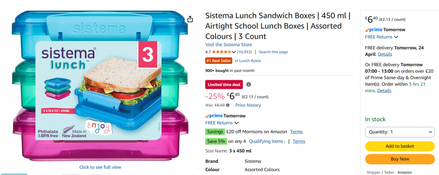 You can never have enough snack boxes or storage boxes, fact! I love these Sistema Sandwich Boxes, they are so handy for the kids lunch boxes or for taking on days out. Amazon have a pack of 3 of these sandwich boxes on a limited time deal for just £6.40, snap these up fast!