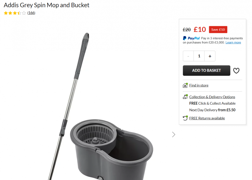I love my spin mop, it's just so easy to use and I'm always surprised at how well it brings my floors up. If you wanted to get one then this is an offer you won't want to miss. Asda George have the Addis Grey Spin Mop and Bucket down to just £10 instead of £20!