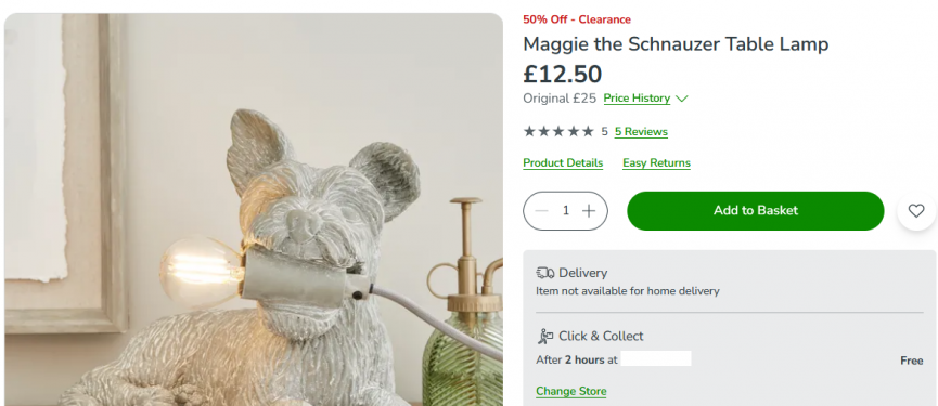 If you're a dog fan then you will probably know that Dunelm always have gorgeous dog themed homeware. We've just spotted this awesome Maggie the Schnauzer Table Lamp in the Dunelm clearance with 50% off!