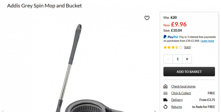 I love my spin mop, it's just so easy to use and I'm always surprised at how well it brings my floors up. If you wanted to get one then this is an offer you won't want to miss. Asda George have the Addis Grey Spin Mop and Bucket down to just £9.96 instead of £20!