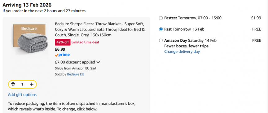 Now this is a bargain you won't want to miss, especially with this weather report coming in of even more frosty weather! Amazon seller Bedsure EU have this Bedsure Sherpa Fleece Blanket for £13.99 which currently has 42% off. However they have also added a 50% off voucher too, meaning you can get it for just £6.99! This is going to fly out!