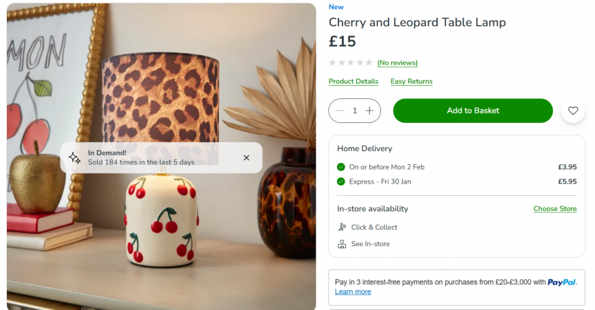They seem to be the prints of the season but it's not often you see them together. That's exactly what you get with this Cherry and Leopard Print Table Lamp that is new in at Dunelm. This lamp is very similar to the Cherry Print LED Lampwe showed you at Dunelm. This lamp may be new in but it is selling extremely fast!