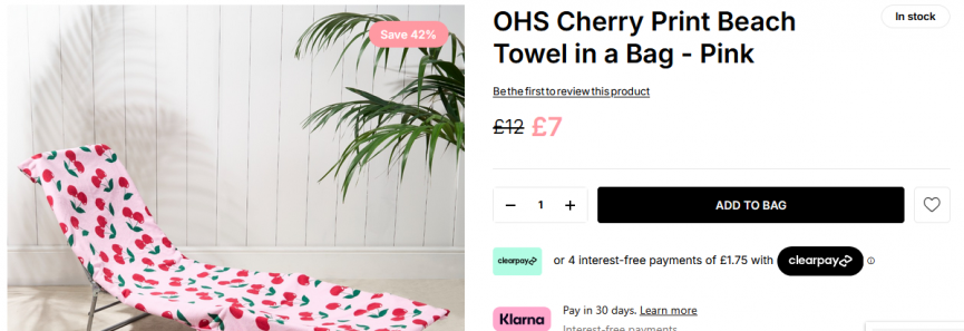 If you're planning a holiday for a bit of winter sun then you might need some new towels to take along with you. This Cherry Print Beach Towel in a Bag is not only cute it is also really handy. Available to order today from Online Home Shop for only £7 down from £12, I have a feeling they will be popular!