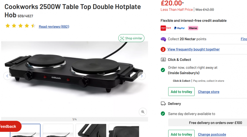 This Cookworks 2500W Table Top Double Hotplate Hob is such a bargain at Argos right now. It's down to just £20 from £42 and is flying out! Perfect for camping or entertaining, grab it now for a bargain price before it sells out.