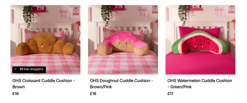 Alongisde the Croissant design there's also a OHS Doughnut Cuddle Cushion - Brown/Pink* for £18 and a OHS Watermelon Cuddle Cushion - Green/Pink* for £17.