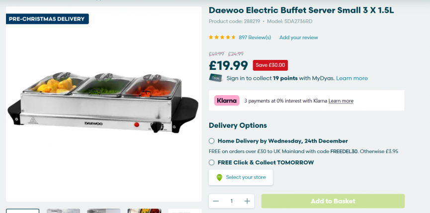 I'm hosting Christmas at mine this year and so I have been thinking about ordering a food warmer but they can be pricey. Luckily I spotted this Daewoo Electric Buffet Server at Robert Dyas down to just £19.99 from £49.99! I had to order one!