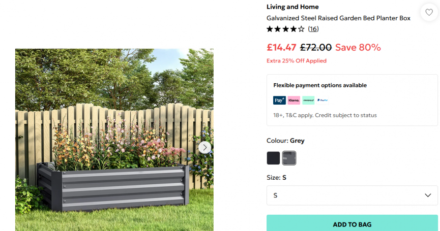 If you're looking to spruce up your garden this year and add some new plants then one of these Galvanized Steel Raised Garden Bed Planter Boxes are a great way to start. They are normally pretty pricey, starting at £72 at Debenhams. However they have up to 80% off making them now from only £14.47!