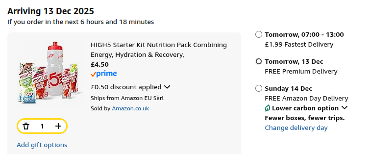 Also available is the HIGH5 Energy Gel Pack* for £4.50 on subscribe and save. HIGH5 energy gel packs are a practical training or race-day essential for the endurance-enthusiast in your life. You'll find 8 gels inside and there's different flavours to choose from.