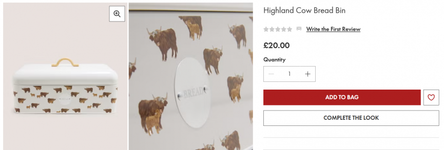 I spotted this Highland Cow Bread Bin a few weeks ago when it first arrived at Matalan but it sold out so fast! If you want to get your hands on one to brighten up your kitchen then you're in luck, it's finally back in stock!