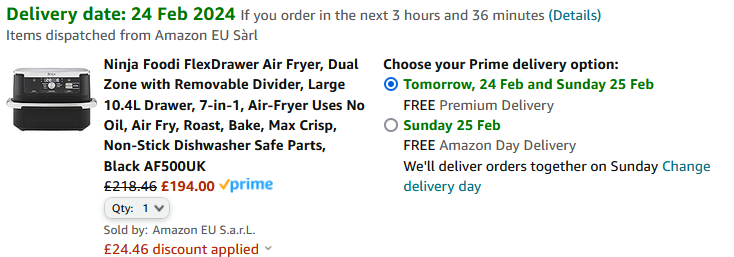 Amazon also have the Ninja Foodi FlexDrawer Air Fryer, Dual Zone with Removable Divider, Large 10.4L Drawer Black and Copper* version on a deal price of £219.99 delivered.