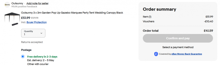If you're on the look out for a gazebo for the summer then this is a bargain you won't want to miss. eBay currently have 20% off selected items when you use the discount code SUNNYSAVER20 at the checkout. You can find them here*. Using the code we found this Outsunny 3 x 3m Garden Pop Up Gazebo for just £41.59 with free delivery!