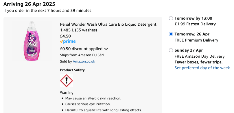 The Non-Bio version is down to £4.75 on a subscribe and save price however the Ultra Care Bio version is slightly cheaper thanks to a 5% voucher alongside the subscrive and save. This takes it down to only £4.50 per bottle.