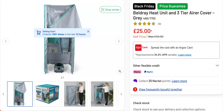 This is a cracking buy over at Argos as part of their Black Friday deals they have started today! This Beldray Heat Unit and 3 Tier Airer Cover is currently half price at £25 instead of £50. It's a must have this time of year, a great way to turn your regular airer into a heated airer!