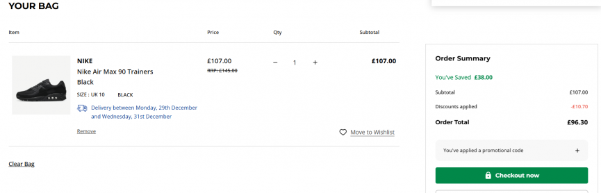 - Nike Air Max 90 Trainers Black* £96.30 (was £145)
