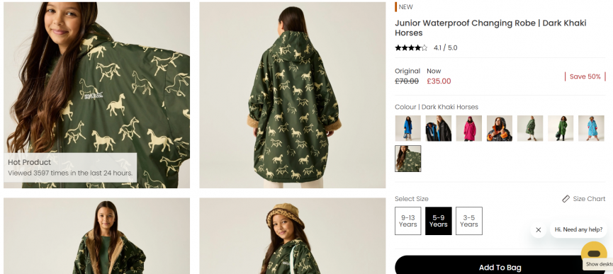 I love my changing robe, it's so handy, I had to buy one for my daughter this year for all our dog walks and school runs. If you have a pony mad child then this new addition at Regatta will be perfect for them! The Junior Waterproof Horse Print Changing Robe is now half price!