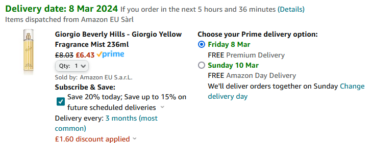 This is a lovely Mother's Day present which makes it look like you've spent a lot but really you've bagged yourself a bargain! Get the Giorgio Beverly Hills Yellow Fragrance Mist for only £6.43 at Amazon when you Subscribe and Save and tick the 10% off voucher!