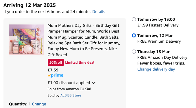 Home delivery is free when you spend £35 or if you have Amazon prime.