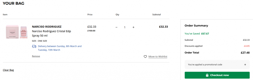 We have found a brilliant bargain at Secret Sales, this Narciso Rodriguez NARCISO Cristal Eau de Parfum 50ml would make a brilliant Mother's Day present. It is worth £100 and is currently on offer at Boots for £80, however with the code BEAUTY15 you can get it for just £27.48 at Secret Sales! How good is that saving!
