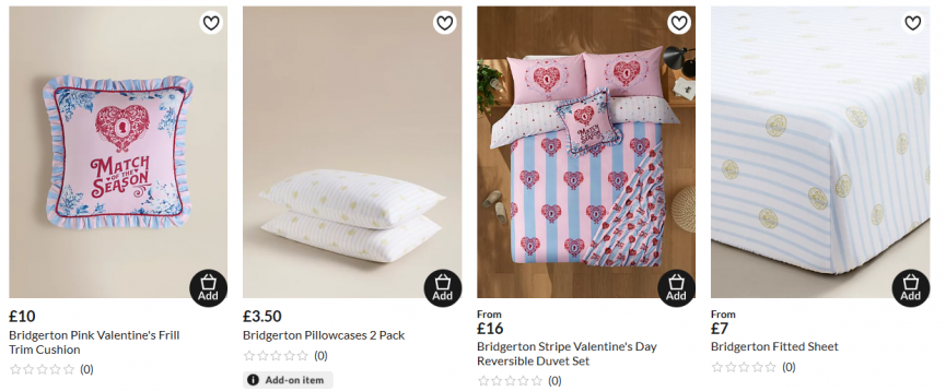 You can also get matching Pillowcases* in a two pack for £3.50 and a Bridgerton Fitted Sheet* from only £7.