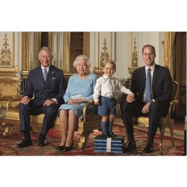 Have you seen the adorable new picture of Prince George released this morning? In it he poses with The Queen, Prince Charles and his father Prince William, to show the next four in line to the throne.