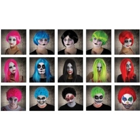 #127039 – FRIGHT NITE CURLY WIG (Green, Blue, Black, Red, Pink) Barcodes: 5054110002725, 5054110002732, 5054110002749, 5054110002756, 5054110002763