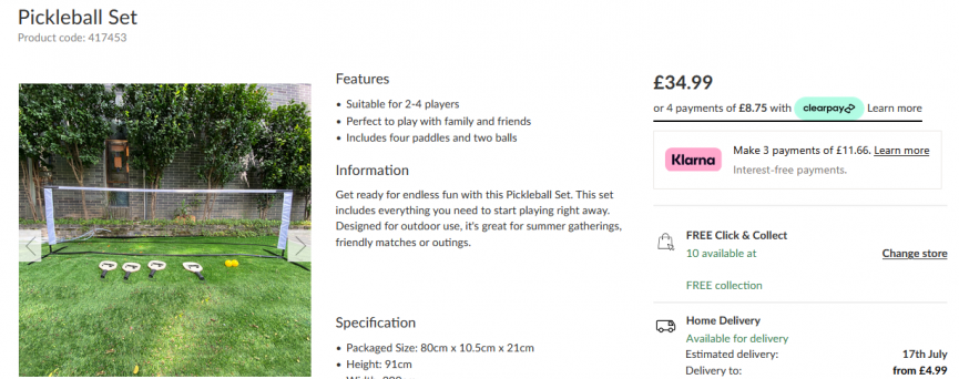 Pickleball seems to be the new 'in' thing right now, every time I open my phone someone on my socials is playing it! The Range have a Pickleball Set in right now and it seems a pretty decent price compared to others I have seen. It's definitely worth snapping up for the summer.