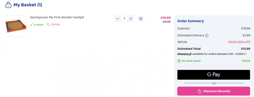 If you're on the look out for a sandpit for the kids this summer then you can't go wrong with this bargain! This Sportspower My First Wooden Sandpit is just £19.99 down from £39.99 but you can get it for only £13.99 when you enter the code 30FUN at the checkout.