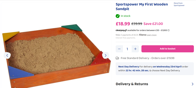 Delivery for the sandpit costs only £1.99, or it's free on orders above £19.99 so if you add some play sand or something else small to your order you can avoid the delivery charge.