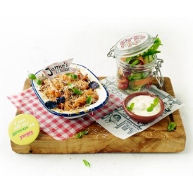 Kids can choose from a range of meals, including beef burgers, Secret Seven tomato pasta bake, happy chicken lollipops and Jamie's proper picnic box.