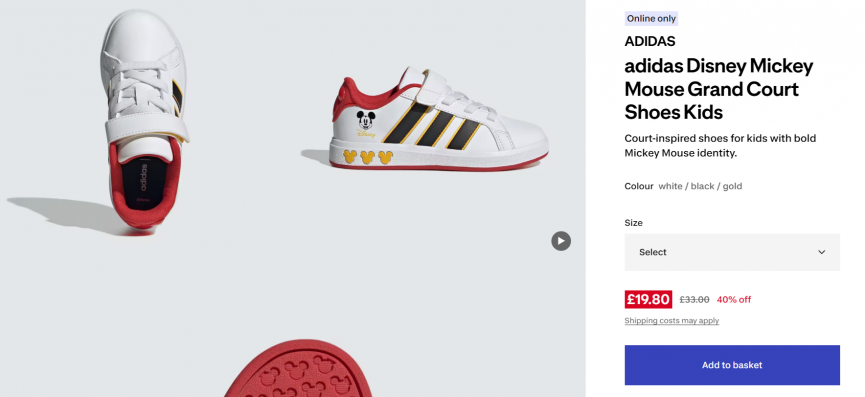 If you're on the hunt for some new trainers for your little one then this adidas Disney trainers at Decathlon have a whopping 40% off right now. They're still £33 at adidas but you can get the adidas Disney Mickey Mouse Grand Court Shoes for only £19.80 at Decathlon!