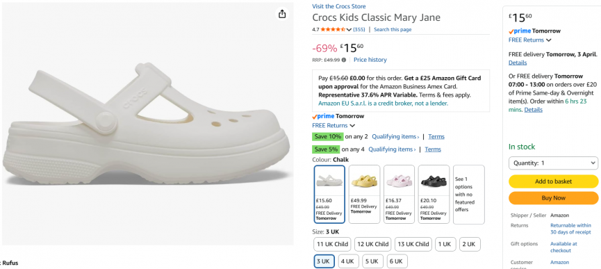 We absolutely love this pretty style of Crocs, they are so lovely for the summer for little ones and we've found them with up to 69% off at Amazon! Prices start from just £15.60 instead of £49.99 and we have a feeling they are going to sell fast!