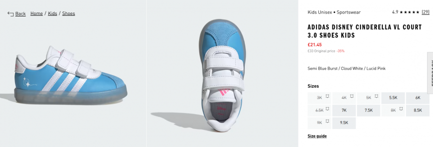 If you have a little Disney fan at home then we have found the cutest trainers over at adidas for them! These adidas Disney Cinderella VL Court 3.0 Shoes Kids have dropped to only £21.45 from £33. There's also free delivery for adiClub members. Sizes are selling fast so don't hang around!