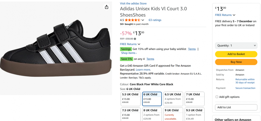 This is such a bargain for little ones, Amazon have these Adidas Unisex Kids Vl Court 3.0 Shoes down to only £13 from £30! They are still selling for around £30 elsewhere! They are selling fast and sizes are limited so order fast!