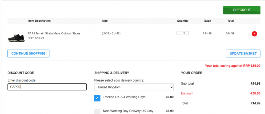 Now this is a nice bargain over at Express Trainers. Walking shoes or boots can be really expensive so these AT All Terrain Strata Men's Walking Shoes are a steal! They have an RRP of £49.99 but use the discount code CAP99 at the checkout and you can get them for just £14.99 with free delivery!