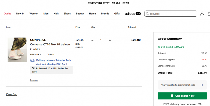If you're a fan of Converse then this is a bargain you won't want to miss! Secret Sales have 80% off these Converse CT70 Trek Hi trainers plus an extra 10% off with the code PAYDAY. They are now the bargain price of £22.50 with the code when they are still selling for £125 at Converse!