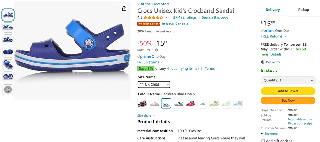 If you're after some sandals for the kids for the summer these Crocs Unisex Kid's Crocband Sandals are a great price at Amazon right now. They're priced from just £15 in either Cerulean Blue or Navy & Red, making them half price.