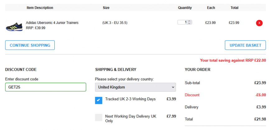 The only condition of this offer is that you spend a minimum of £20, just apply the code GET25 at the checkout and watch the price drop.