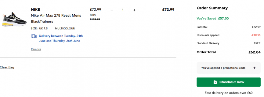 - Nike Air Max 278 React Mens Black Trainers*£62.04 (was £129.99)
