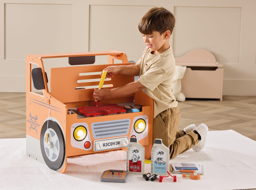For the little ones with the need for speed, the NEW Mechanic Car (£34.99) is sure to rev up those play times. Equipped with fully working headlights, budding mechanics can be on hand to fix a multitude of problems. Also NEW for this year is the Downhill Racer Set (£24.99). Ready to be assembled in any way the little ones see fit, this new toy will have kids whizzing with excitement – available in orange or red.