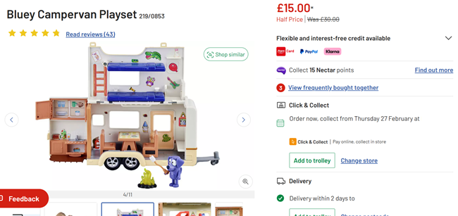 If you're looking for gifts for a Bluey fan this Bluey Caravan Adventures Playset looks like a great buy. It's now 50% off at Argos as it's reduced to just £15 and that looks like great value for money.