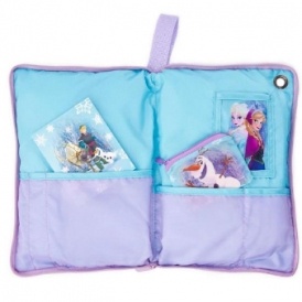This Anna and Elsa themed Cushion comes complete with a mini note pad, a purse and a phone or iPod pocket with feed for the headphones.