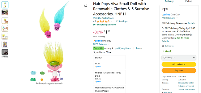 The last Trolls doll we showed you sold out straight away but we just spotted another one that's going to fly out! The Trolls Band Together Hair Pops Viva Doll is just £1.99 at Amazon when it's still selling for £15 at Argos!