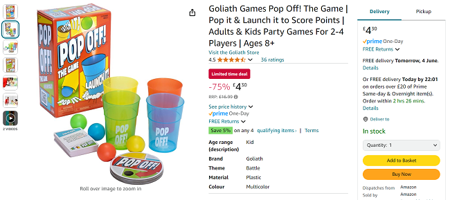 Here's a cracking bargain game to play with the family, as the Pop Off! Party Game has dropped to just £4.30 at Amazon with free Prime delivery. That's 75% off the recommended price, and it's still selling for the full £17 at Argos so this is going to go fast!