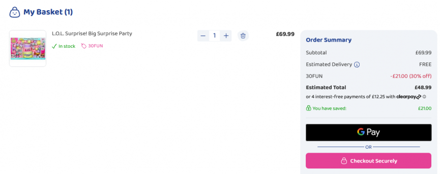 If you have a little L.O.L Surprise fan at home then this is a bargain you won't want to miss. The L.O.L. Surprise! Big Surprise Party doesn't come cheap at £69.99 at Bargain Max, however add the code 30FUN at the checkout and the price drops to only £48.99. This seems to be a lot cheaper than elsewhere right now!