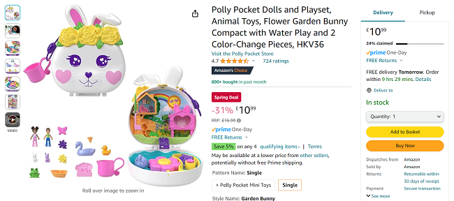 If you're looking for Easter gifts as an alternative to chocolate this Polly Pocket Flower Garden Bunny Compact is a great price at Amazon right now. It's dropped to just £10.99 as part of the Spring Deal Days offers, and that's the cheapest we can find it.