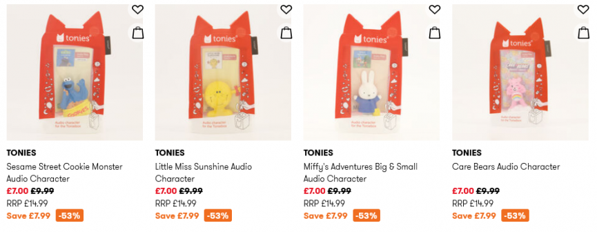 If you're looking for deals on Tonies then this is an offer you won't want to miss! We've spotted Tonies products including the character figurines with up to 54% off at TK Maxx. You can purchase these online too so don't worry about traipsing round the shops, they're right here for you!