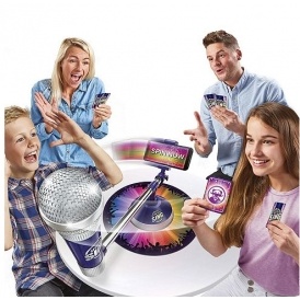 Basically, you get the chance to show off your singing voice if the spinning microphone lands on you. If it does then you have to sing to one of the tracks on a tablet or mobile through the free Spin to Sing app.