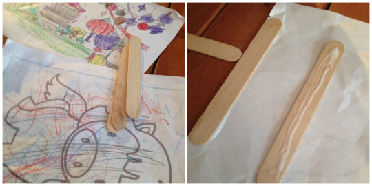 We then used two lollipop sticks per picture, glued to the back along the shorter sides.